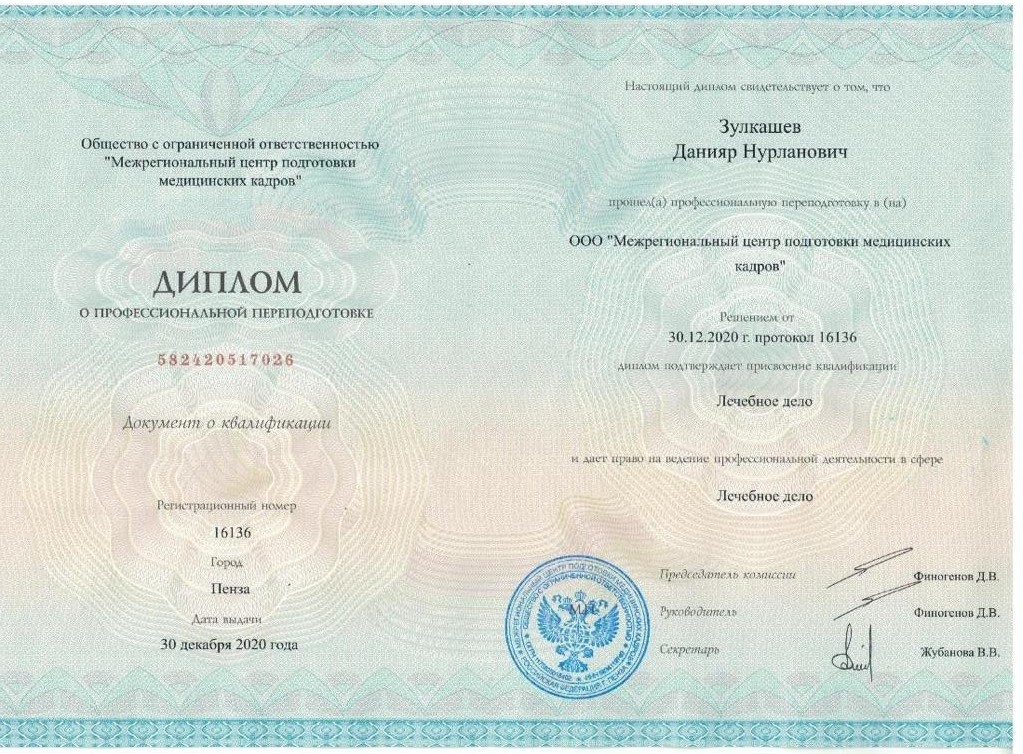 Меня зовут Зулкашев Данияр Нурланович, я — фельдшер выездной наркологической бригады в наркологической клинике "Плюс" в Барабинске. Я стремлюсь помогать людям, оказывая квалифицированную медицинскую помощь в самых разных ситуациях, и верю, что каждый пациент заслуживает внимания и поддержки на пути к выздоровлению.
